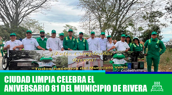 Ciudad Limpia se vinculó al gran desfile del aniversario 81 del municipio verde de Colombia, para compartir con los riverenses un mensaje de protección al medio ambiente, además de garantizar la limpieza durante la actividad.
